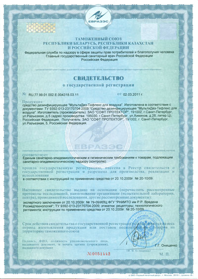Свидетельство о государственной регистрации (таможенный союз)
