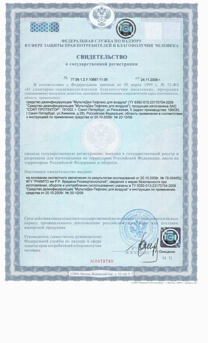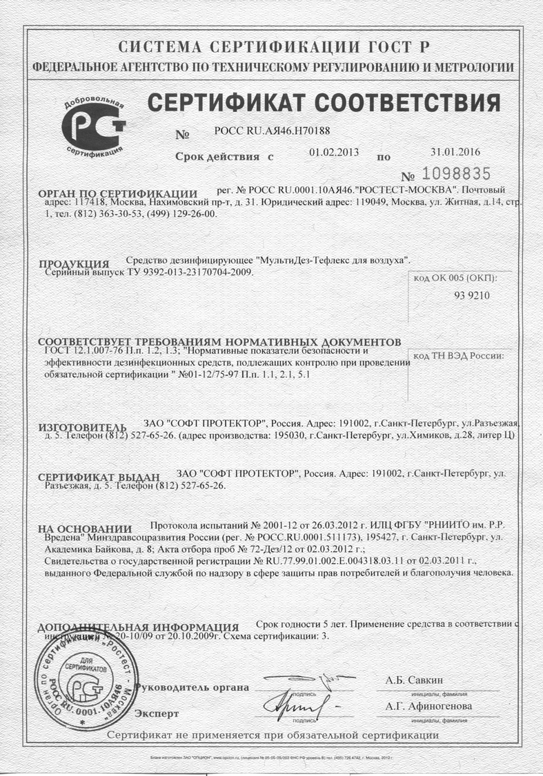 "МультиДез-Тефлекс для воздуха" – дезсредство для дезинфекции воздуха и удаления неприятно-пахнущих веществ.
